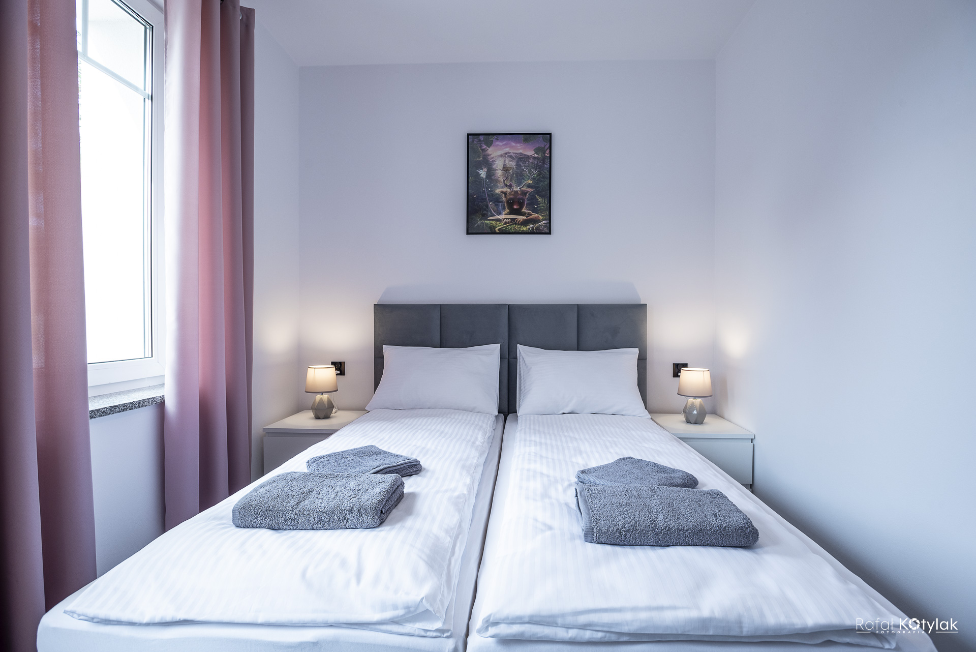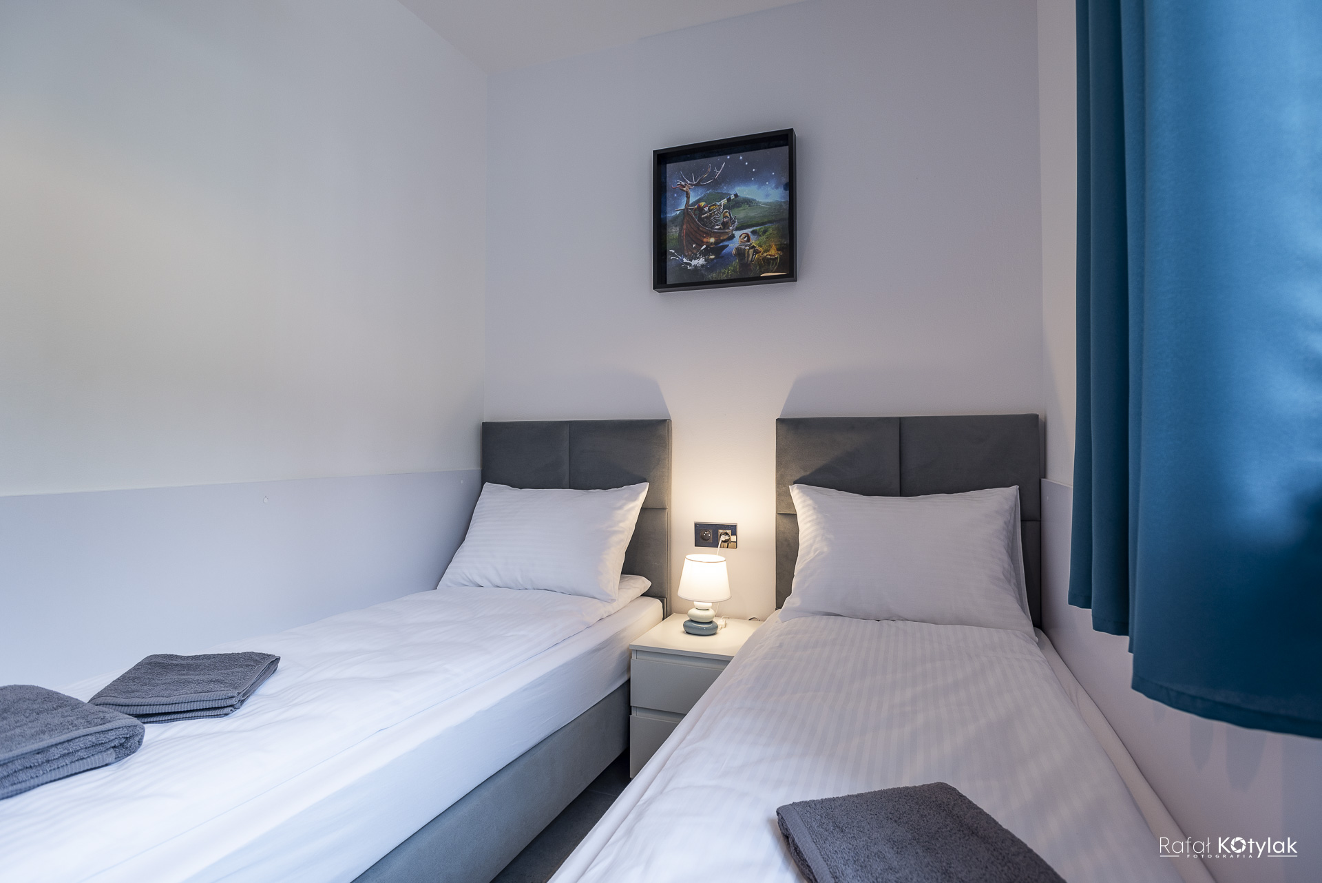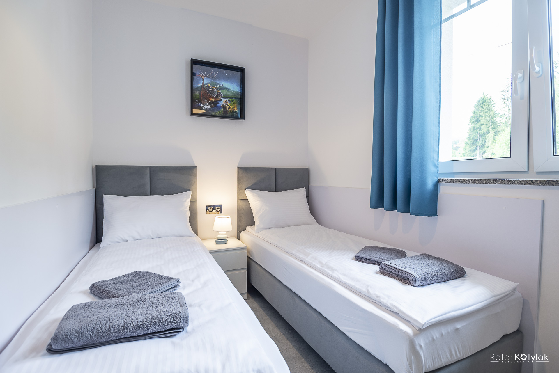 Łóżka jednoosobowe: 2 ( wyposażone w łączniki pozwalające na połączenie dwóch łóżek jednoosobowych w jedno łóżko podwójne)